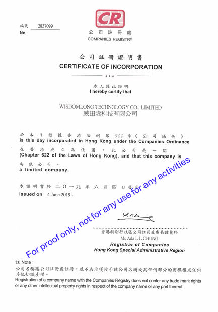 • চীন Shenzhen Wisdomlong Technology CO.,LTD সার্টিফিকেশন