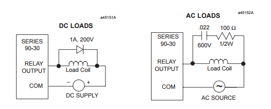 রিলে যোগাযোগের জীবন, অবলম্বন লোড স্যুইচ করার সময়, দমন সার্কিট ব্যবহার করা হলে প্রতিবন্ধকতা লোডের যোগাযোগের জীবন পরিদর্শন করবে। নিম্নলিখিত পরিসংখ্যান এসি এবং ডিসি লোড জন্য সাধারণত দমন সার্কিট উদাহরণ। 1A, 200V ডায়োডটি ডিসি লোড স্যাম্প্রেস সার্কিটে প্রদর্শিত হয় একটি শিল্পের মান 1N4935। এসি লোড দমন জন্য দেখানো রোধ এবং ক্যাপাসিটরের হয় সবচেয়ে উপাদান ইলেকট্রনিক্স ডিস্ট্রিবিউটর থেকে পাওয়া উপাদান ,.