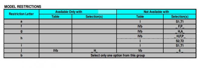 যথাযথ তীর নীচে কলাম ব্যবহার করে XIII এর মাধ্যমে সমস্ত সারণির কী থেকে নির্বাচন করুন। Asterisk প্রাপ্যতা ইঙ্গিত পত্র (ক) বিধিনিষেধ টেবিলে হাইলাইট করা বিধিনিষেধ পড়ুন। ড্যাশ দিয়ে সারণী সারণী