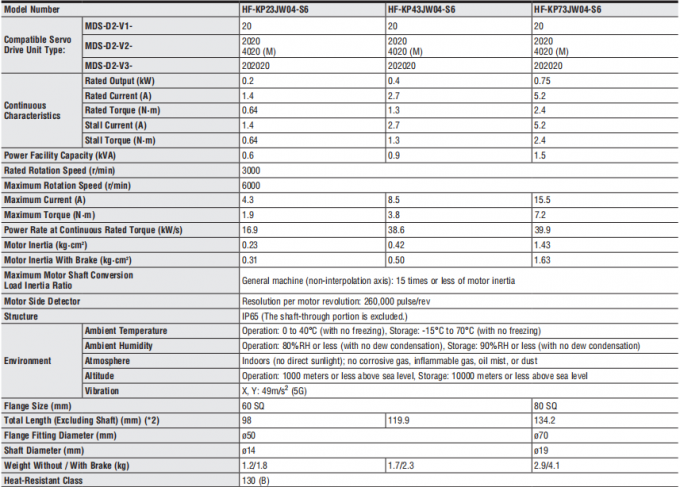 1000r / min 3AC 106V 5.2A 750W Industiral Servo মোটর HF-KP73JW04-S6 মিত্সুবিশি